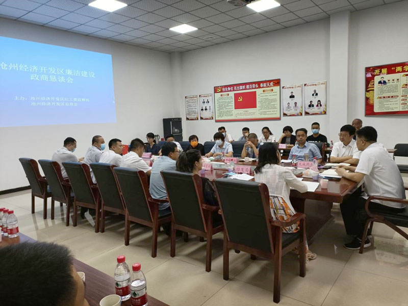 9月15日,沧州经济开发区纪工委监察组、区总商会在荣耀体育官方网站组织召开了医药行业廉洁建设政商恳谈会,区党工委委员,纪工委书记、监察组组长唐小明参加并讲话。