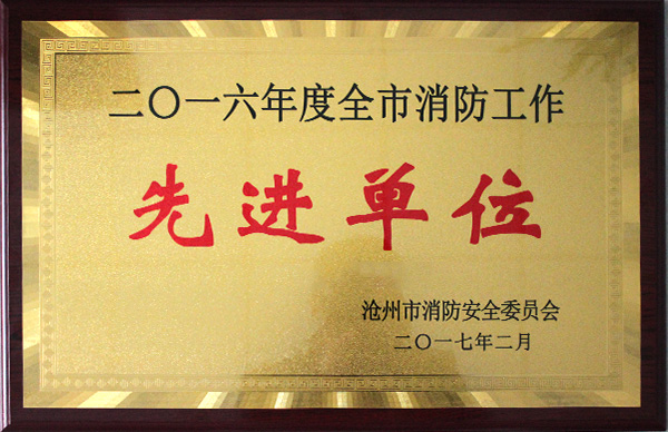 近日,沧州市消防安全委员会召开2016年度全市消防工作先进单位和先进个人的表彰大会。包括我公司在内全市有61家单位和70位个人受到表彰。